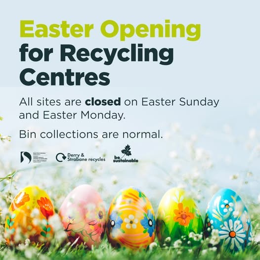 Mayor of Derry City and Strabane District Council, Cllr Lilian Seenoi-Barr, wished the public a healthy and happy Easter holiday, and urged everyone to familiarise themselves with the full opening hours listing on the Council’s website.