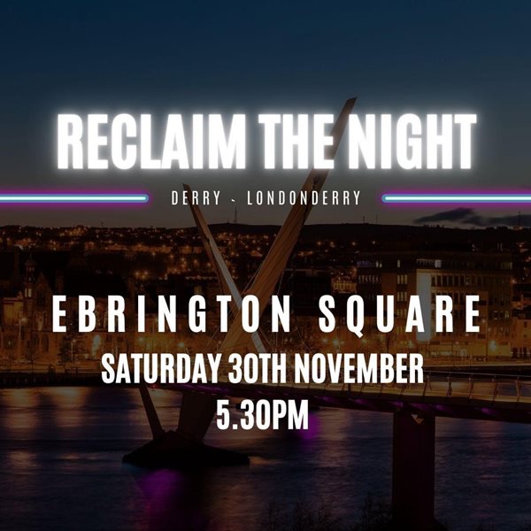 The Reclaim the Night March will take place on Saturday, 30 November at 5.30pm with participants urged to convene at Ebrington Square to cross the Peace Bridge before gathering at Guildhall Square.