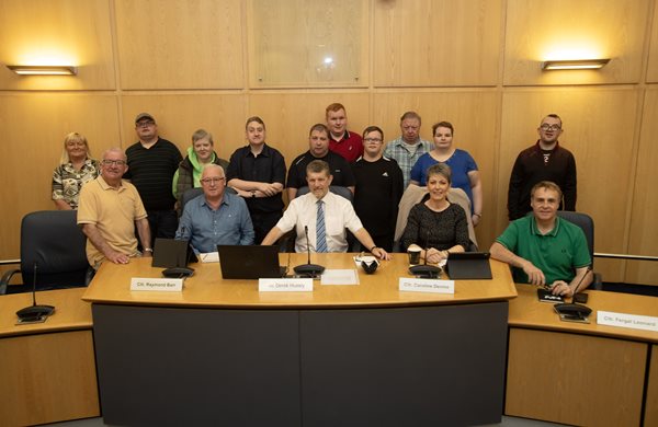 New Horizons caters for people with mild/moderate learning challenges in the North West. A group from the facility’s community inclusion class took part in a question and answer session with some of their local councillors from Derry City and Strabane District Council. The meeting took place in the Council Chamber in the Strabane offices.