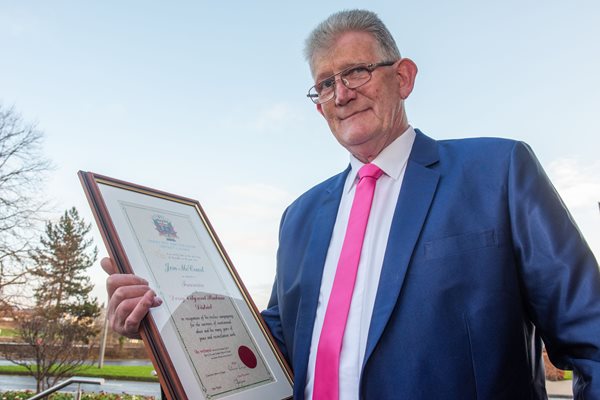 Jon McCourt conferred with Freedom of City and District at Guildhall ceremony