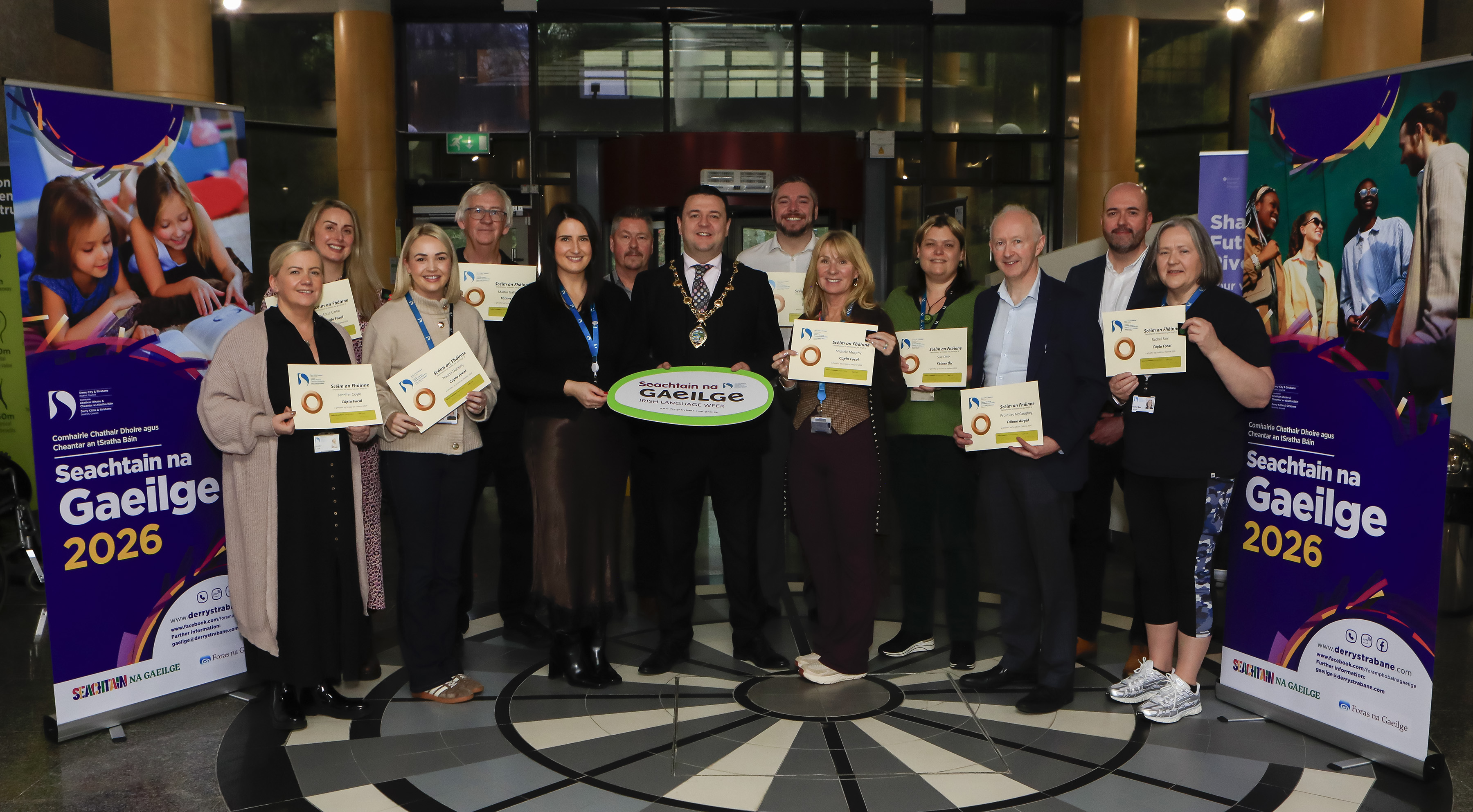 The Mayor of Derry City and Strabane District Council, Cllr Ruairí McHugh, has congratulated council staff who have reached important milestones in their Irish language learning as part of this year’s Irish Language Week.