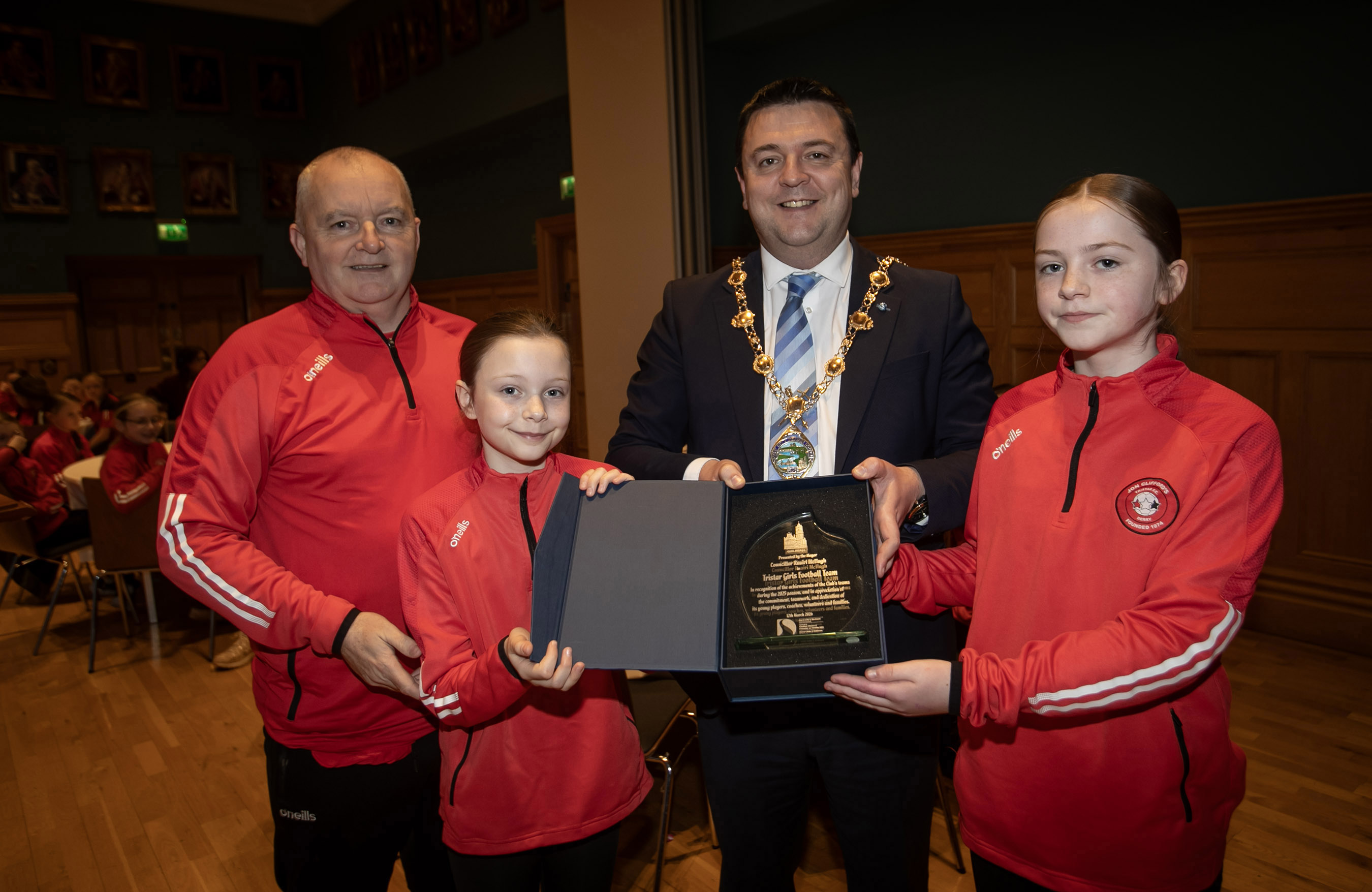 Mayor McHugh said, “It was a pleasure to welcome the Tristar Football Club Girls to the Guildhall and recognise their fantastic achievements. Their dedication, teamwork and passion for the game are an inspiration, and they are wonderful ambassadors for their club and for girls’ football in our district.”