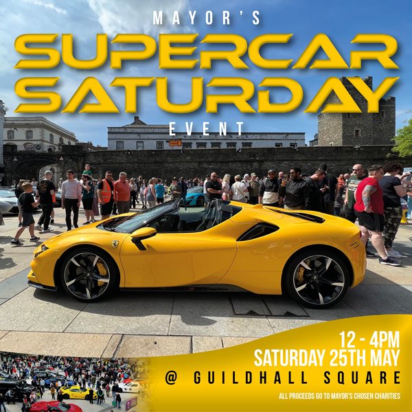 A fleet of world-class supercars will rally into Guildhall Square as part of a family-friendly fundraiser for the Mayor’s chosen charity this weekend.