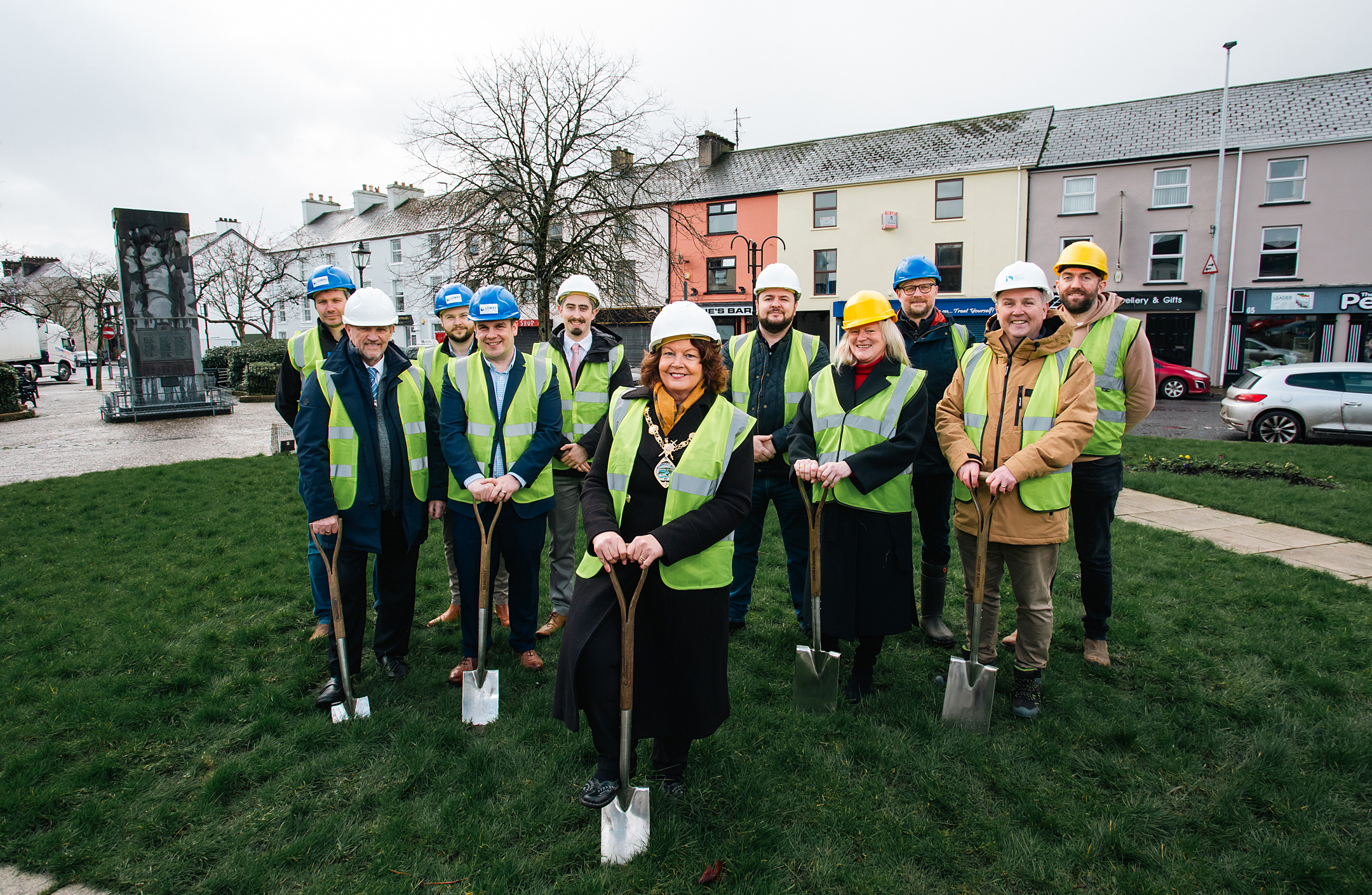 The Mayor of Derry and Strabane, Councillor Patricia Logue, was in Castlederg on Friday for the turning of the sod as work officially gets underway on the Diamond and Castle Park elements of the Derg Active Project.