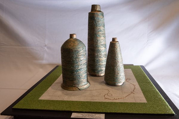 The artwork consists of three bell shaped forms up to 3.5m in height with night time illumination, based on the shapes of spools of thread as used in the shirt factory sewing machines. The public realm works will involve the reconfiguration of the paved area with the creation of some new grass and planted sections including the public art installation, and will comprise soft landscaping, footways and carriageway.